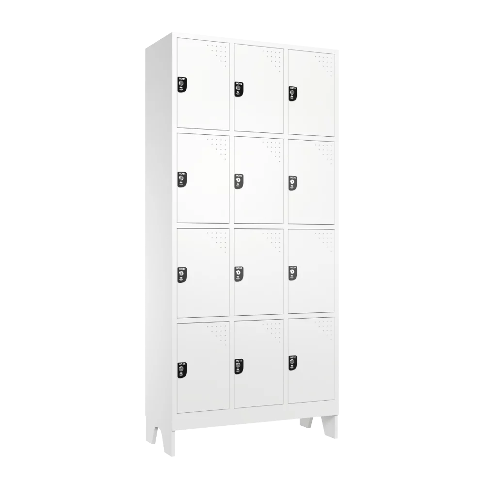 Os pés elevados são integrados ao design, facilitando a limpeza e evitando o contato direto com o solo, aumentando ainda mais a durabilidade do armário. Disponível com diferentes opções de fechaduras, chaves ou pitão, este armário é também personalizável, adaptando-se às necessidades específicas de qualquer ambiente.