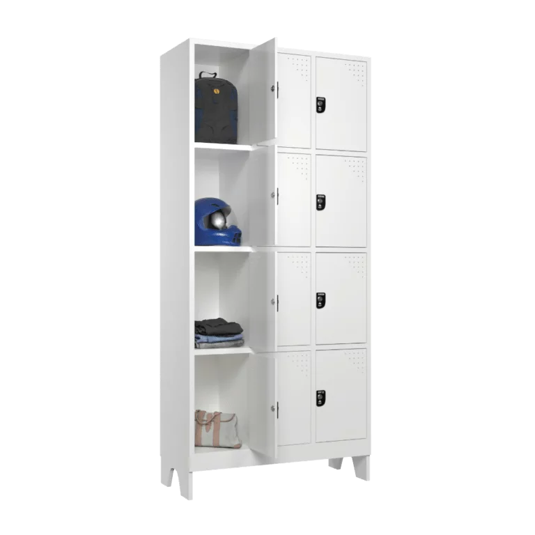 O Armário para vestiário roupeiro 12 portas feito em plástico é ideal para armazenamento, proteção e segurança de objetos e pertences de funcionários ou clientes, desde objetos pequenos a grandes, como capacetes de moto, mochilas grandes, casacos, roupas, sapatos e etc. Muito utilizado em frigoríficos, hospitais, lavanderias e principalmente na indústria. Perfeito para vestiários de todos os portes, de qualquer segmento e setor.