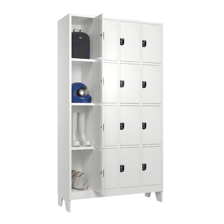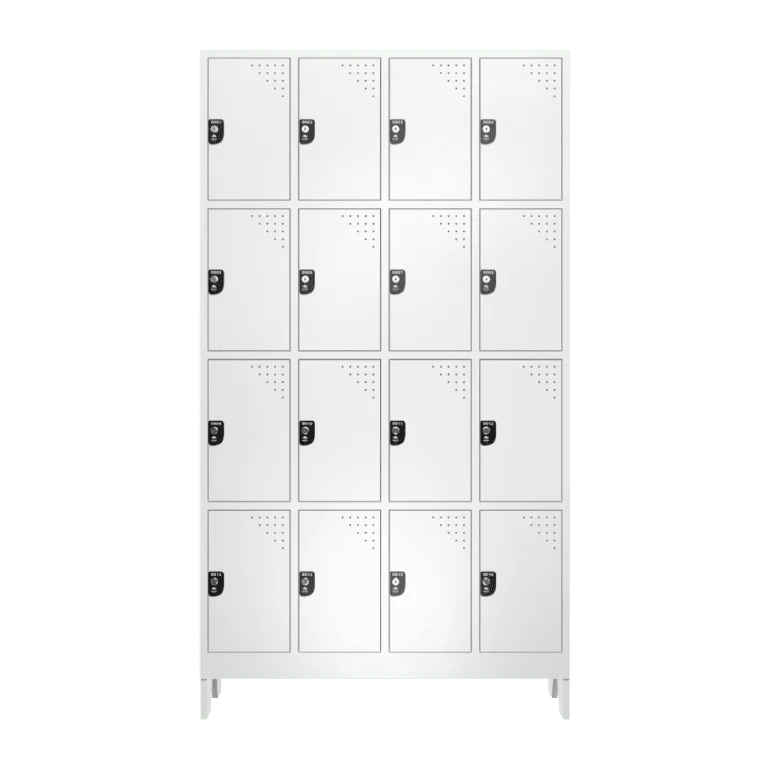 O Armário roupeiro 16 portas para vestiário é feito em plástico de engenharia e é ideal para armazenamento, proteção e segurança de objetos e pertences de funcionários ou clientes, de pequeno à grandes objetos como capacetes de moto, mochilas grandes, casacos, roupas, sapatos e etc. Muito utilizado em frigoríficos, hospitais, lavanderias e principalmente na indústria. Perfeito para vestiários de todos os portes, qualquer setor e segmento da industria.