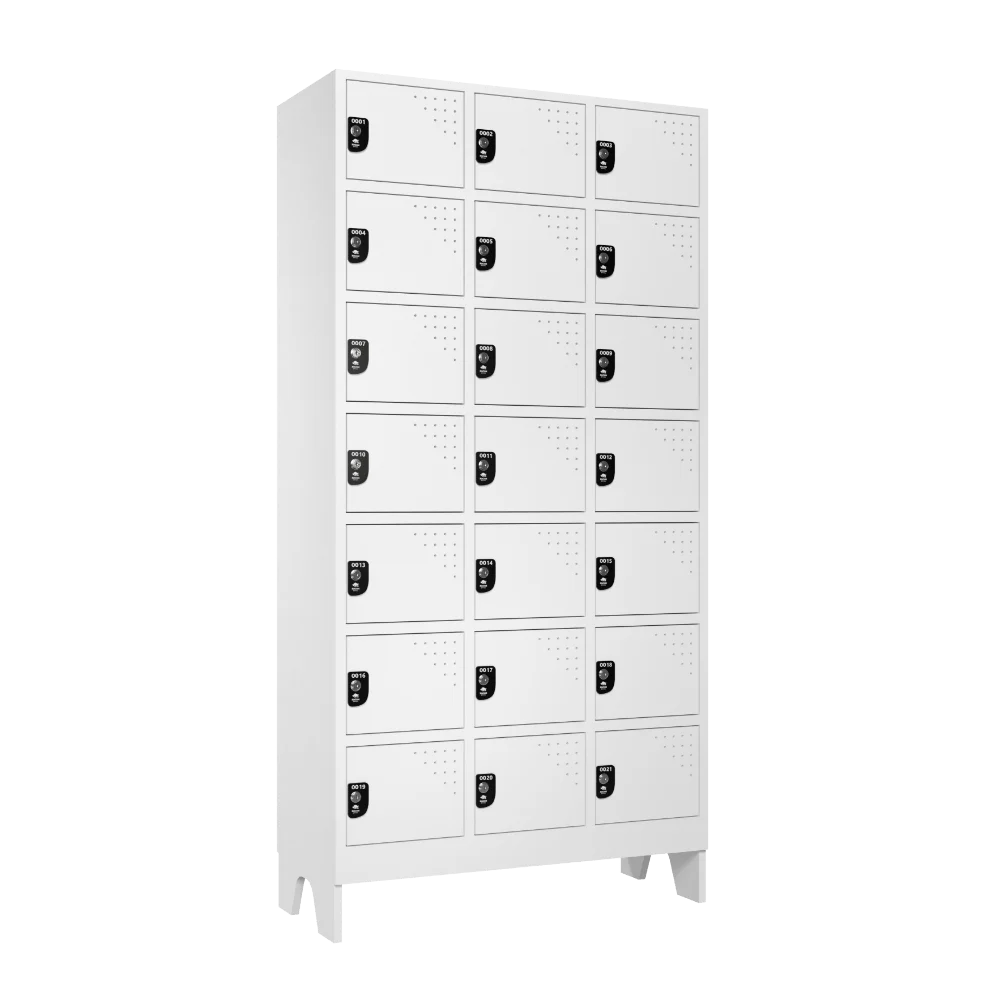 O Armário para vestiário roupeiro guarda volumes 21 portas é ideal para armazenamento, proteção e segurança de objetos e pertences de funcionários e seus EPI’s. Muito utilizado em frigorífico, hospital, lavanderia e indústria de alimentos.